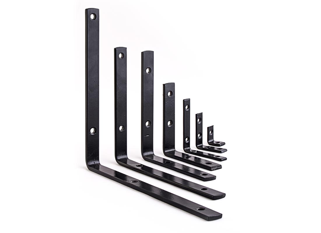 Se utilizan para sostener y unir todo tipo de estantes, mesadas, mostradores, etc. Fabricadas con material SAE 1016 con plachuelas de 12x3 y 19x5mm para las medidas mas pequeñas y de 25x5mm para las mas grandes. El largo de la misma va a depender del largo del estante. Todas las terminaciones son en pintura epoxi horneada a altas temperaturas.