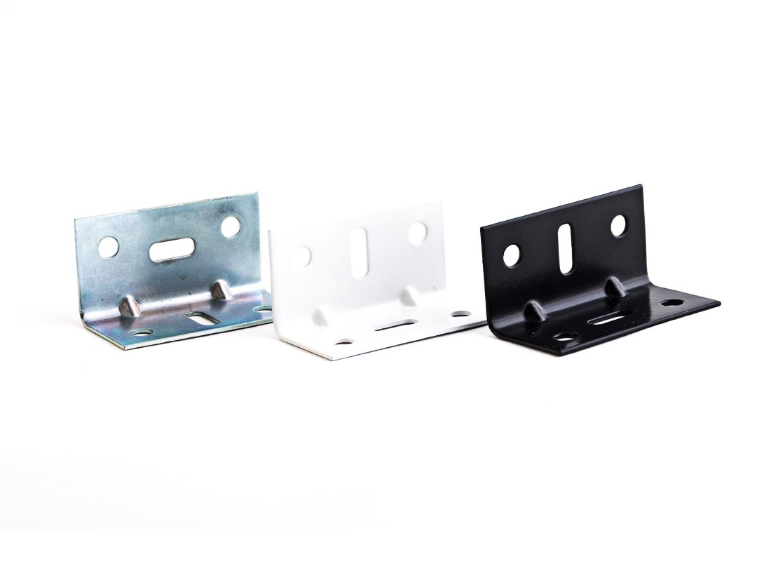 Se utilizan para sostener y unir todo tipo de estantes, escritorios, mostradores, etc. Fabricadas con material de chapa doble decapado laminada en frío de 1.25mm, con una estria en el angulo obteniendo asi un refuerzo. El largo de la misma va a depender del largo del estante. Todas las terminaciones blanco y negro son en pintura epoxi horneada a altas temperaturas.
