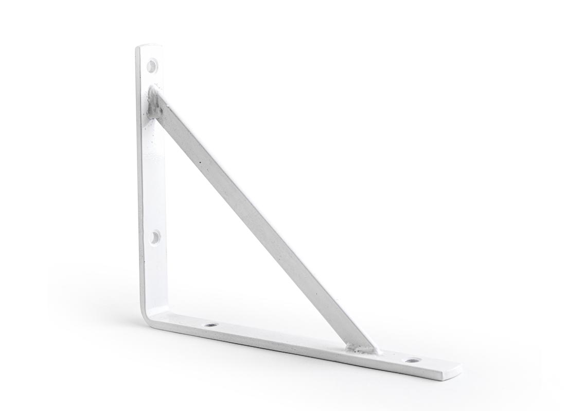 Se utilizan para sostener todo tipo de estantes, mesadas, mostradores, etc. Fabricadas con material SAE 1016 con plachuelas de 19x5mm para las medidas mas pequeñas y de 32x5mm para las mas grandes. El refuerzo transversal permite una mayor resistencia al peso. El largo de la misma va a depender del largo del estante. Todas las terminaciones son en pintura epoxi horneada a altas temperaturas.