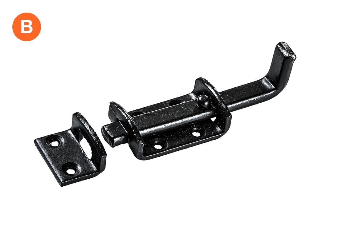 Pasador forjado con apoyo chato, utilizado en todo tipo de puertas, generalmente de madera, viene con puente y con orificio para colocar un candado. Fabricados en dos formatos en varias medidas desde 10 a 30cm, con material tipo planchuela de 32x3 mm. Todas las terminaciones están realizadas con una protección de pintura negra de inmersión, para evitar la corrosión.