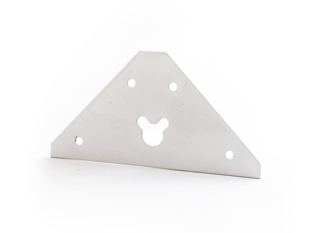 Se utilizan para sujetar alacenas. Fabricadas con material de chapa doble decapado laminada en frío de 1mm de espesor. Los dos orificios centrales diseñados para poder descolgar las alacenas sin necesidad de quitar los tornillos. Posee una terminación de galvanoplastía para evitar la corrosiôn.