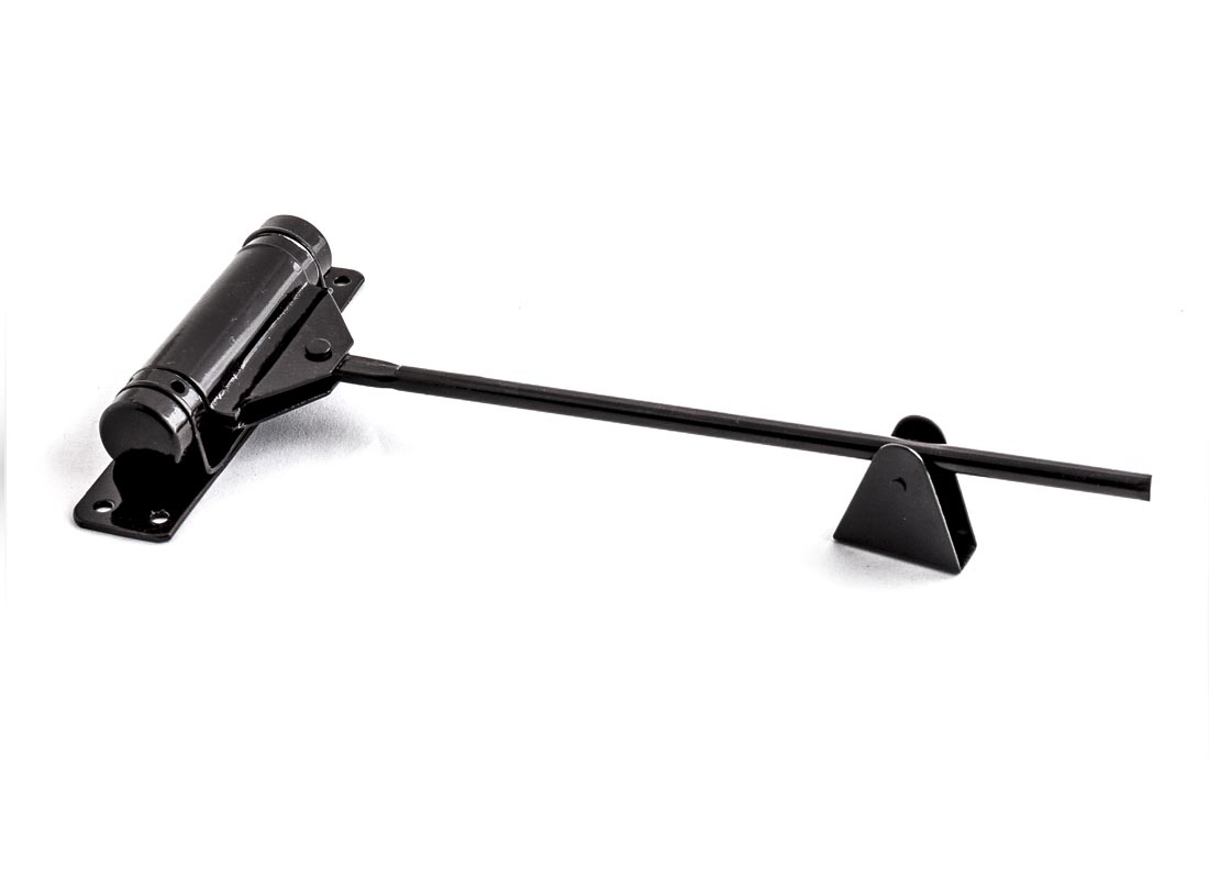 Utilizado generalmente para puertas mosquitero, su mecánismo con resorte permite el cierre automatico de la puerta. Posee orificios para regular la tensión de cierre. Esta fabricado con estrictas normas de cálidad; resorte templado de material ASTM 227 Clase ll de 2.5mm de diámetro.